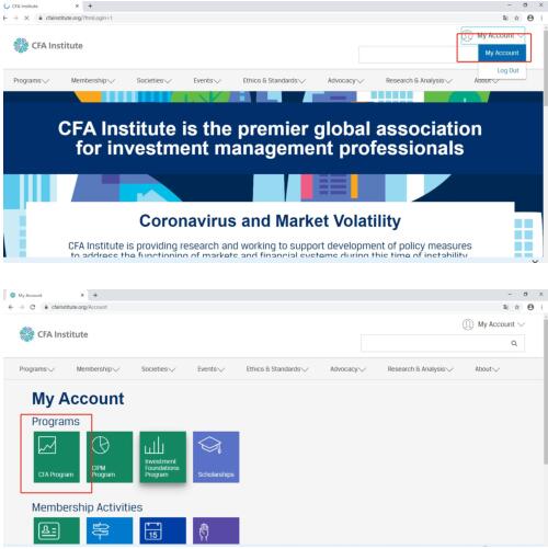 1.进入协会官网,登陆您的协会账号,在my account里选择CFA Program