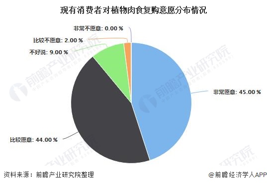 根据数字100的市场调研数据显示,现有消费者对植物肉食用后复购和推荐意愿很大,“非常愿意”和“比较愿意”占比近90%。同时,尽管植物肉市场尚未成熟,但是潜在消费者却在不断增加。中国人的饮食消费习惯也正在发生快速转变;2019年,中国常吃素食人口约占总人口比例的4%左右,并且存在上升空间。庞大的人口数量将为中国植物肉行业蓬勃发展提供有力支持。