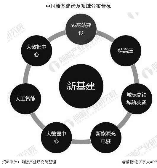 新基建主要包括5G基站建设、特高压、城际高速铁路和城市轨道交通、新能源汽车充电桩、大数据中心、