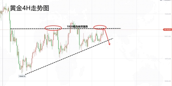 黄金从技术层面来看,1920区域无疑是重要的阻力区域,如果该区域形成压力再次下跌,那么在型态上将形成右肩。反之上破继续上涨,将进一步打开向上的空间。由于黄金已经连续横盘5个交易日,长时间的横盘无论上涨还是下跌都需要基本面的配合。如果您认为美国财政刺激方案不能达成,那么在1920区域无疑是最佳的参与空头机会;反之,您认为美国财政刺激方案达成,那么回撤找机会参与多头。当前的交易只能博弈一个方向。笔者个人预期美国财政刺激方案在大选前难以达成,所有在1920区域博弈空头,一旦成功向下的空间非常的大。这也是笔者早盘在1920区域给出参与空头的主要思路。已经根据笔者策略在1920区域参与空头者继续持有,防守1928位置不变。目前持仓等待即可。