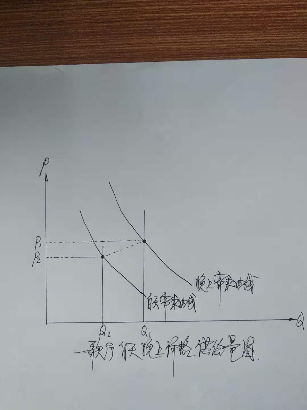显而易见,歌厅的白天的需求曲线低一些或左一些,晚上的需求曲线高一些或右一些。
