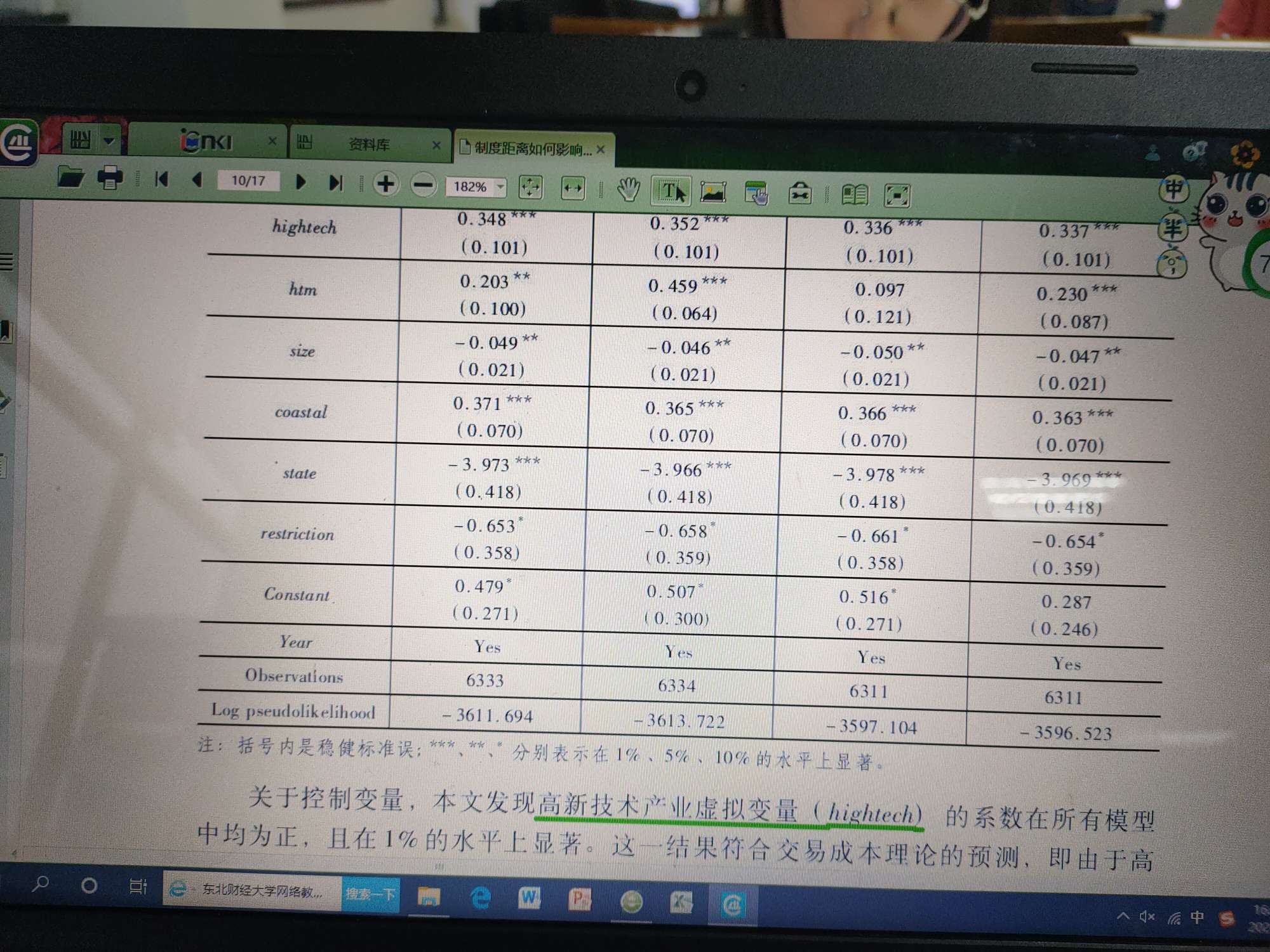 修正一下,括号内的为系数的标准误,没有标出P值,你需要自己跑一下数据看看系数的显著性