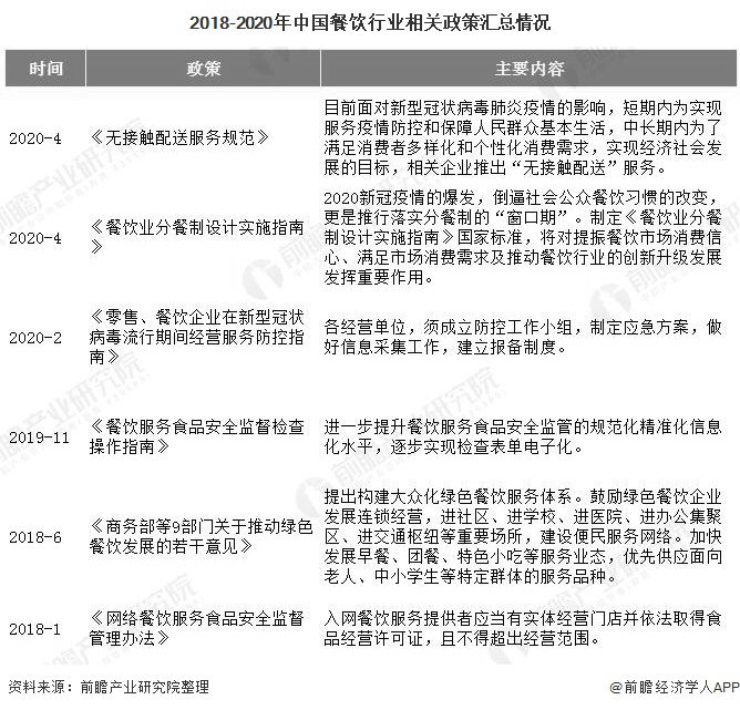 近年来随着餐饮行业不断出现安全问题以及2020年新冠疫情的爆发,餐饮行业监管逐渐加强。2020年4月,国家市场监督管理局发布关于征求《餐饮业分餐制设计实施指南》和《无接触配送服务规范》的意见,指出2020新冠疫情的爆发,倒逼社会公众餐饮习惯的改变,是推行落实分餐制的“窗口期”。