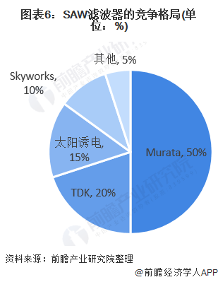 SAW滤波器主要供应商为Murata、TDK、太阳诱电等几家日本厂商,而BAW滤波器则为Avago (被Broadcom收购)以及Qorvo,占据几乎全球超过95%以上份额。其中博通与安华高并购重组后一家独大,占据了全球BAW滤波器87%的市场份额。目前博通拥有最具有竞争力的产品组合,其推出的BAW滤波器在高端智能手机应用市场中亦占据统治地位。