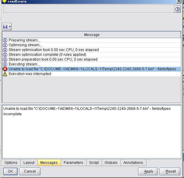 在用 analysis 结点,根据已知模型评估时遇到如下问题,请高手指教。错误截图在附件。