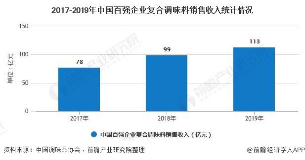 据中国调味品协会数据显示,中国百强企业复合调味料销售收入呈逐年增长态势,2019年百强企业复合调味料销售收入为113亿元,同比增长14%。