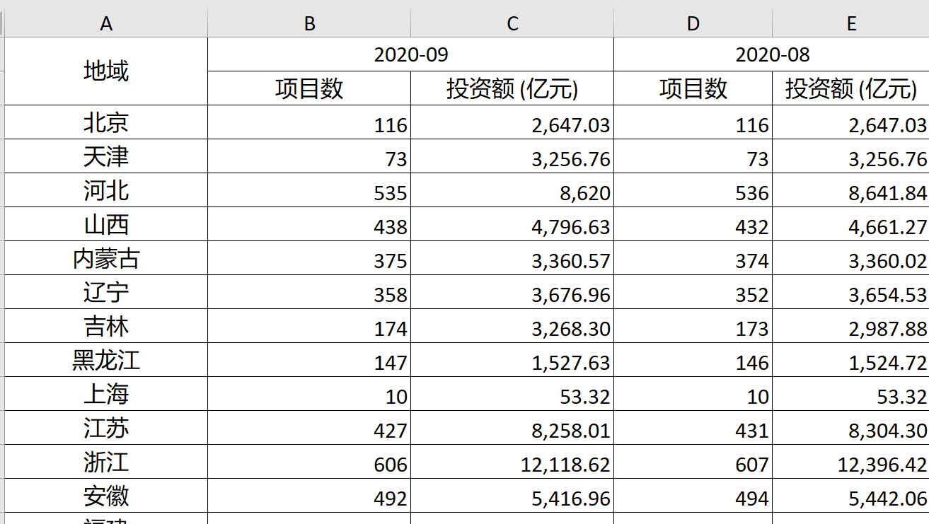 2016年1月-2020年9月各省市PPP项目项目数及投资额.xlsx