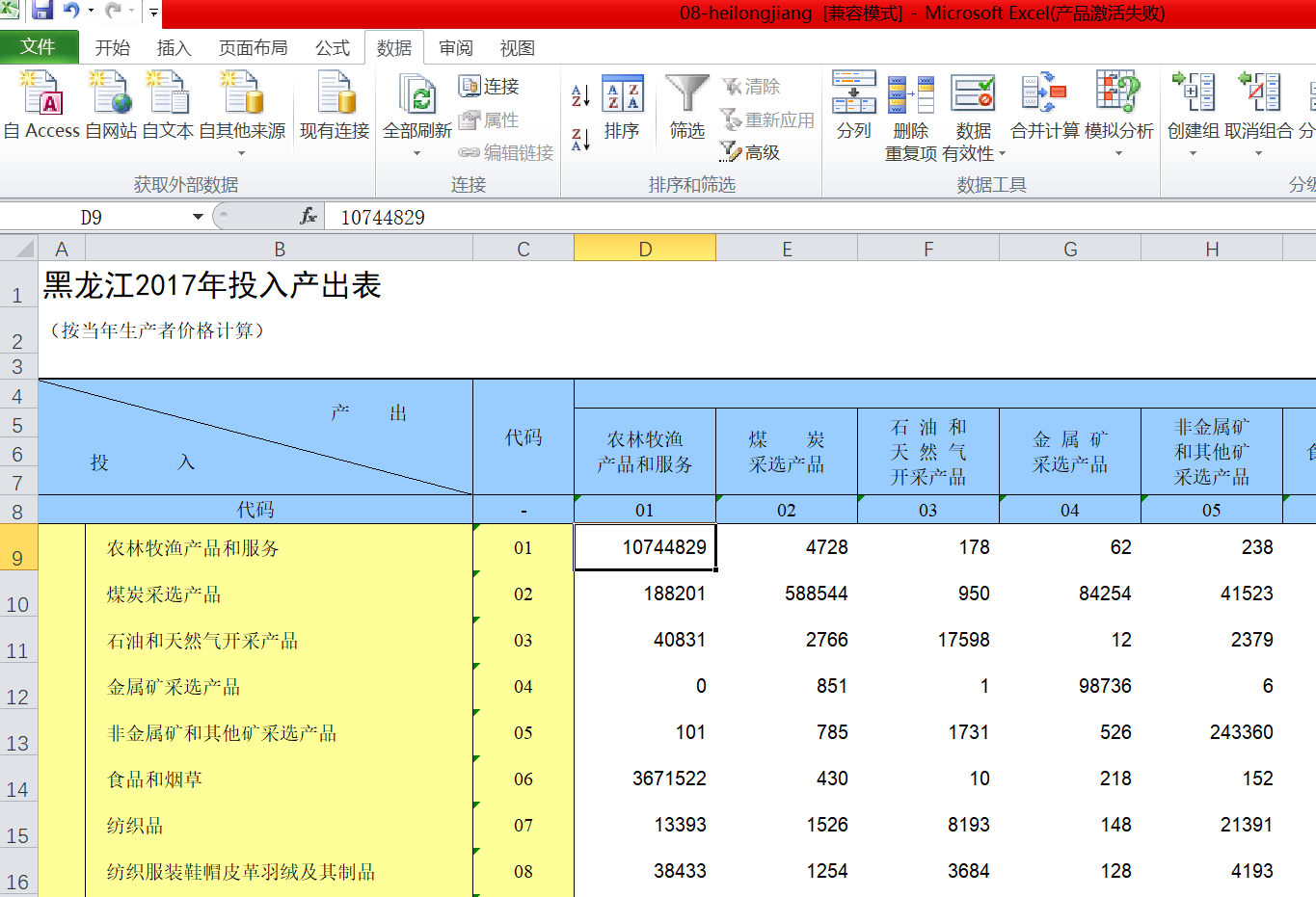 广大经济 发表于 2021-4-19 01:57 购买了这个2017年的投入产出表,可是一和黑龙江官方统计年鉴给出的数据对比一开始的数据就不对,请问一下是 ...