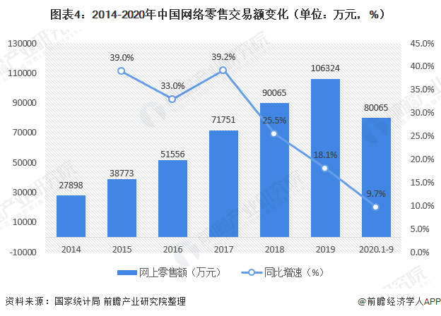 从2013年起,我国已连续七年成为全球最大的网络零售市场。面对新冠肺炎疫情的严峻挑战,网络零售市场的支撑能力进一步显现。2020年1-9月网上零售额达80065亿元,同比增长9.7%,其中实物商品网上零售额66477亿元,同比增长15.3%。