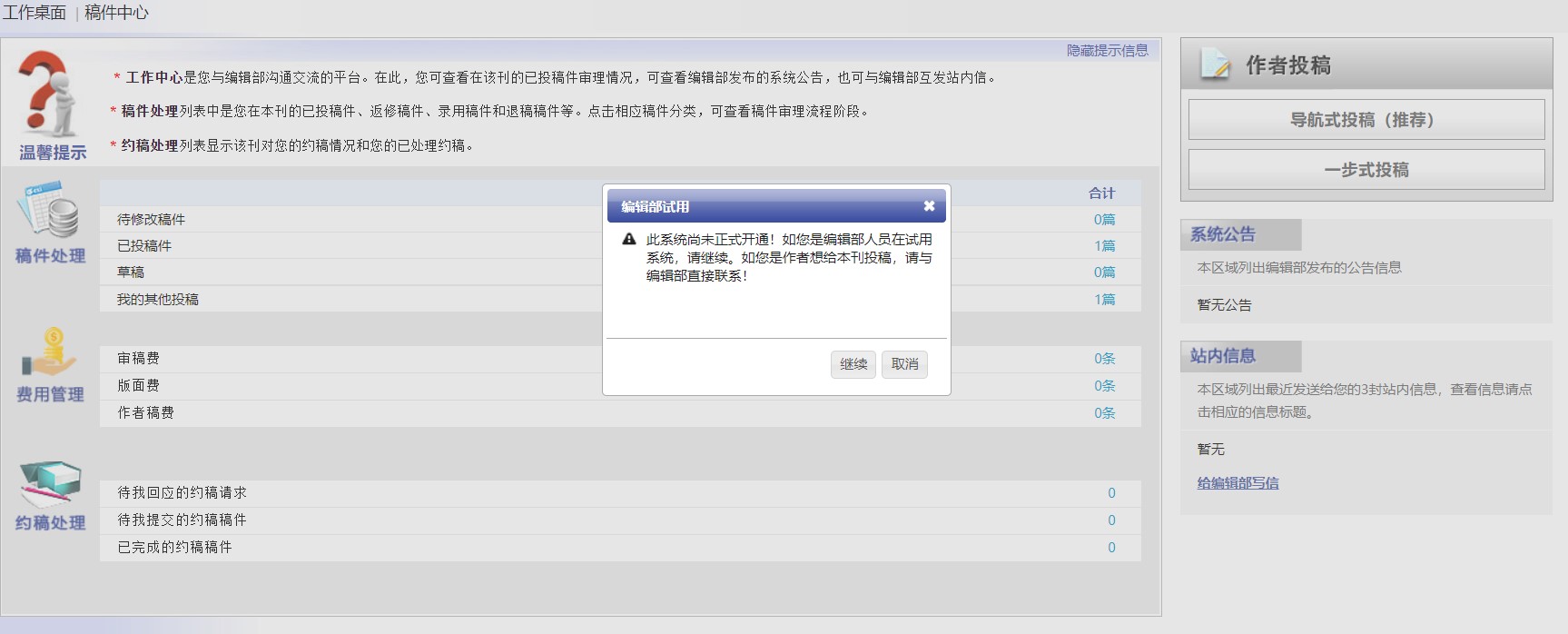 我在这个网页投稿以后,一个多月了还在初审,有稿件编号,然后我今天仔细一看,我重新点击投稿,出现了这样的页面,心里咯噔一下,我是不是白投了?这个网站是不是假的投稿网址,我这个投稿是不是编辑部根本看不到?有没找到怎么联系编辑的电话,唯一一个发信给编辑,对方名字也不像个真实的名字啊,急死我了