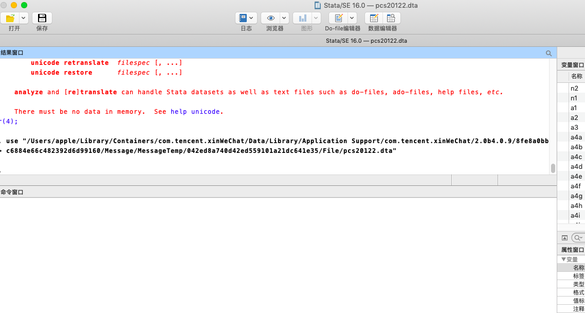 mac系统中stataSE 16打开dta文件后,找不到文件原有语句