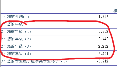 二元logistic分析结果,多分类变量有多个B值取哪个写入方程?