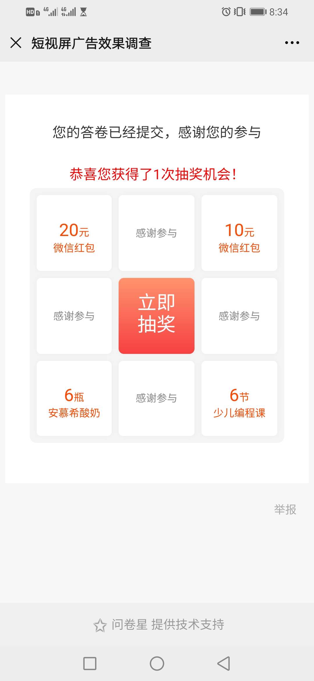 问卷观看三十秒有趣的短视频,即可回答。