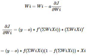 所以我们要求的就是J最小的时候wi的值。a是变化的速率。下式就可以比作从山顶走到山底的过程,而a表示行走的步长或者是速率。