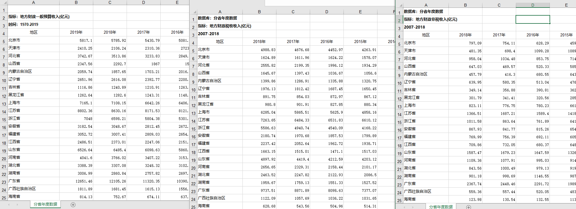 31个省2007-2018财政收入:税收、非税收;财政支出:教育 科技 环保 社保 文化 支出 https://bbs.pinggu.org/thread-10256799-1-1.html