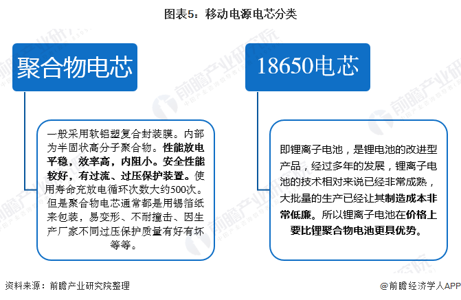 电芯是移动电源的重要组成部分,移动电源常用的电芯一般可分为聚合物电芯和18650电芯。