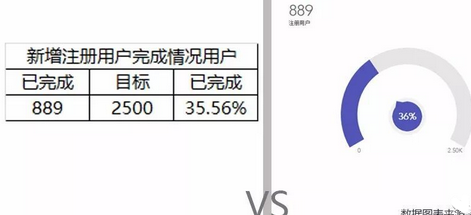 分析KPI完成进度:单指标进度可用计量图,对比同样是KPI进度完成情况,后者更加直观,一目了然。