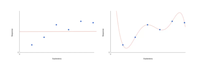在完全相反的饱和模型中,每个数据点都有一个参数。这样,你会有一个完美的模型,但是如果你试图将新的数据用于模型,它没有任何解释力。