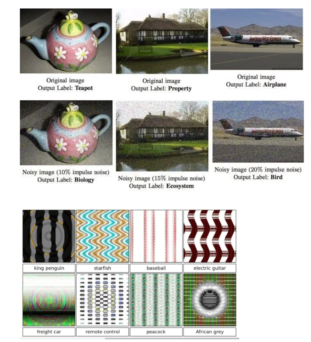 例如, 令人深刻的Google Cloud Vision API 也很容易被图像中的少量噪音欺骗。相反地,另一篇有趣的论文展示了深度神经网络如何“看到”那些根本不存在的图像。
