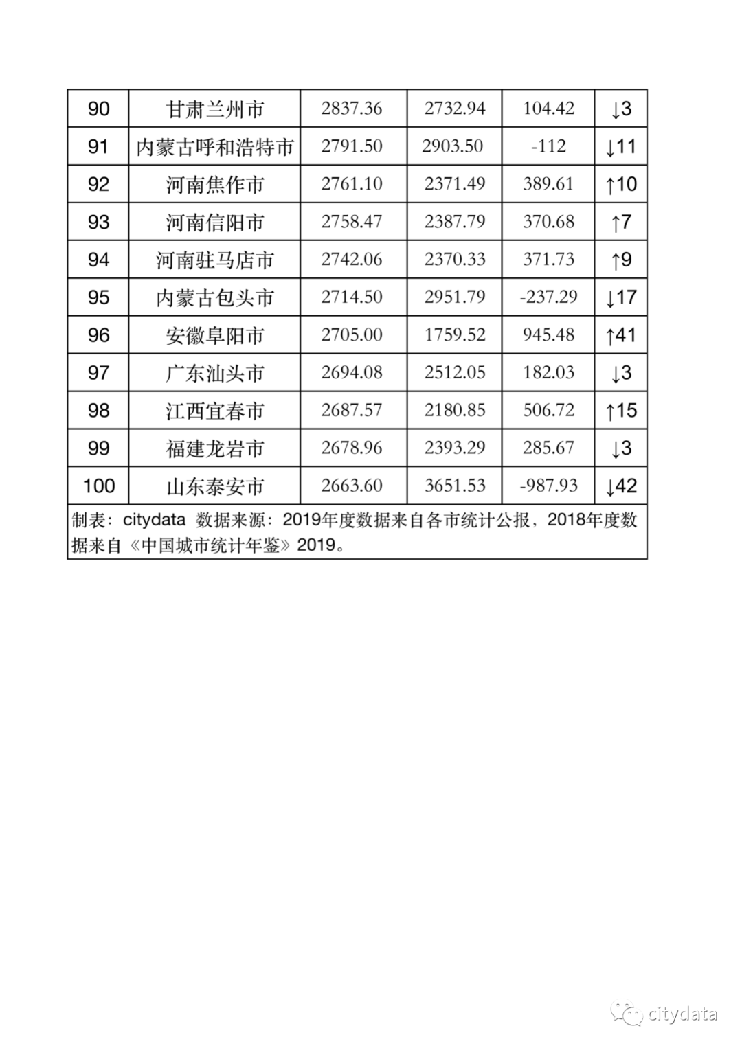 全国地市州盟2019年度GDP排名(101-333)