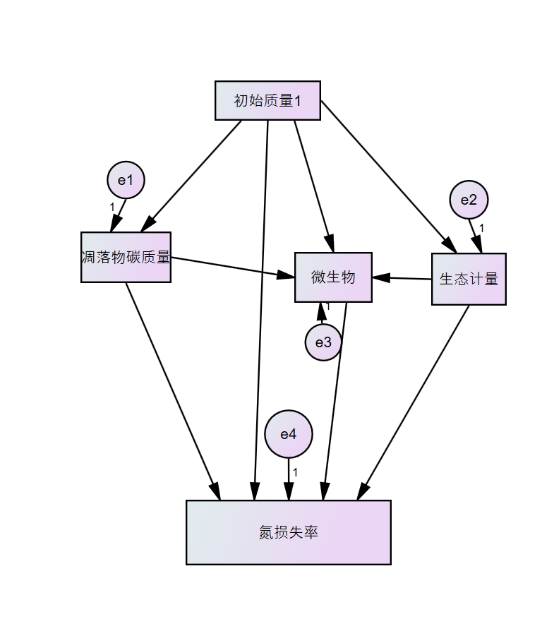amos新手,看别人文献时,发现别人能够在两个内生变量之间画双向箭头,但我自己操作时不敢怎么样叶画不了双向箭头,下图是一篇文献中做的结构方程模型,也是用Amos做的。他的很多双向箭头不知是怎么画上去的,例如SOC和soil pH之间的双向箭头,Availabile N和Available P之间的双向箭头。我自己试着和他画一摸一样的模型,但是就是双向箭头画不上去,所以想请教如何在两个内生变量之间画双向箭头。