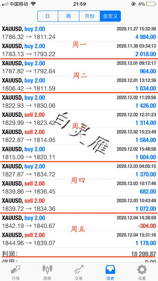 以下是灵雁的实盘的交易账户,盈利的第一步:带好止损;第二步:扩大止盈位,不要盈利一点就跑,控制自己拿的住单子;第三步:不频繁做单,耐心等待合适的时机。