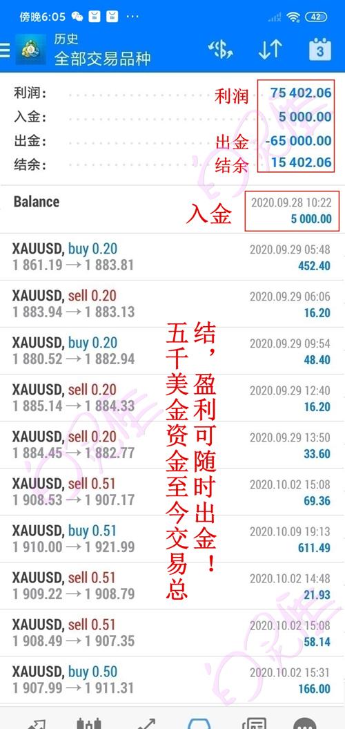 以下为灵雁学员唐姐的交易记录,2020年10月份入金,平时以短线小波段利润为主,单量不固定,但利润是可观的,账户本金三千美金,目前已出金三万五美金。
