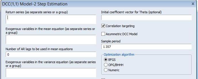 请问Eviews做DCCGARCH模型第一行填什么啊?