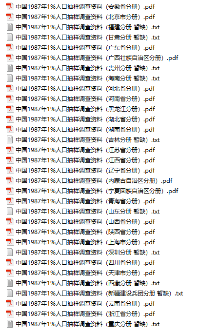 1987年各省1%人口抽样调查资料 PDF 求交换