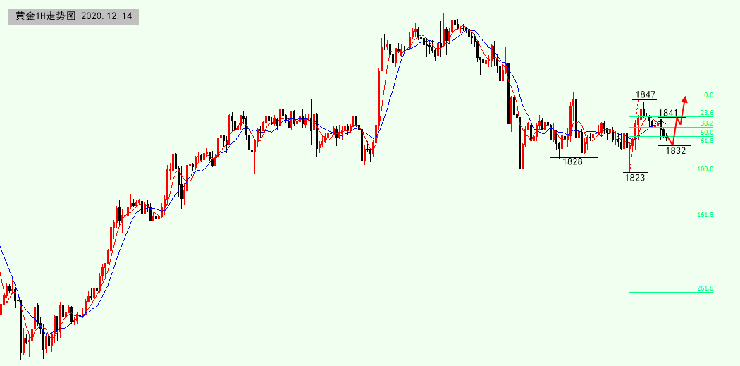 我个人建议,既然早间先走了下跌,那就寻找位置低多看震荡反弹,上周五上涨过程(1823-47)黄金分割618的位置在1832一线,我们曾经无数次说到过618原则(618位置开仓的成功率很高,宁可做错不可错过),我认为既然遇到了,那么亚盘暂且先在1832一线看涨,如果欧盘不涨我们美盘前再选择调仓。