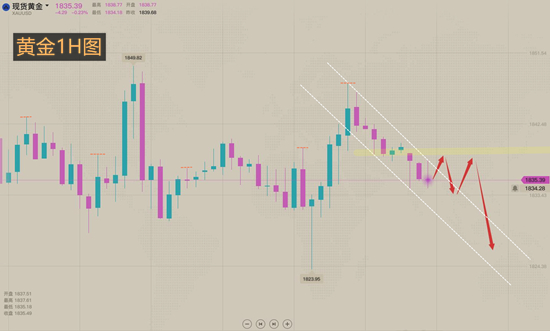 黄金1838下空,保护1843,目标1825;