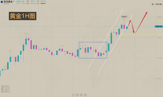 黄金强势上涨走势,欧盘回落依然继续做多。在消息没有完全兑现前,预期利多依然会继续推进黄金上涨。继续多,欧盘回落依托1890支撑做多。