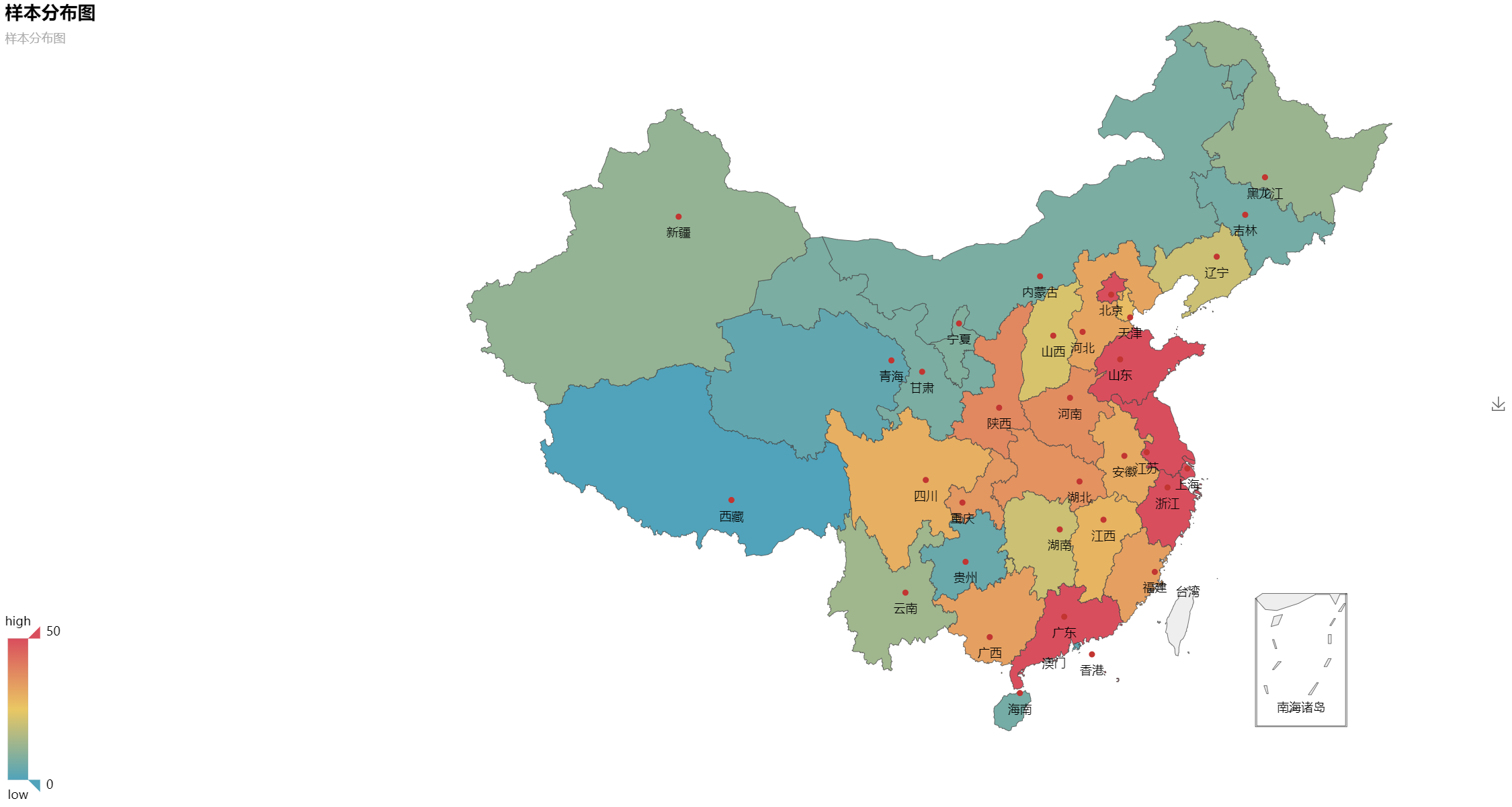 可视化地图,有时候又被称为热力地图,在研究中常常被使用。 其实表格也可以表示,但所实话,不如地图显示地理分布来的直观。