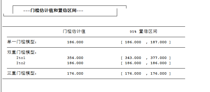heric221 发表于 2022-5-31 10:56 “门限值远超过门限变量对应的数值”什么意思? 从截图中,没看出什么异常。门槛估计值都在置信区间内。