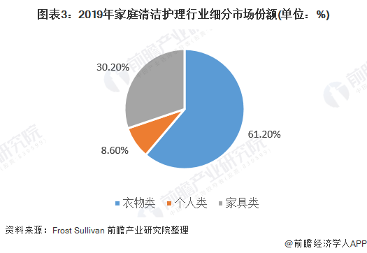 分产品看,国内家庭清洁护理市场主要由衣物清洁护理、个人清洁护理和家居清洁护理三类产品构成。衣物类、个人类及家居类清洁护理产品零售总额分别为678、95及335亿元,分别占中国家庭清洁护理产品零售总额的61.2%、8.6%及30.2%。