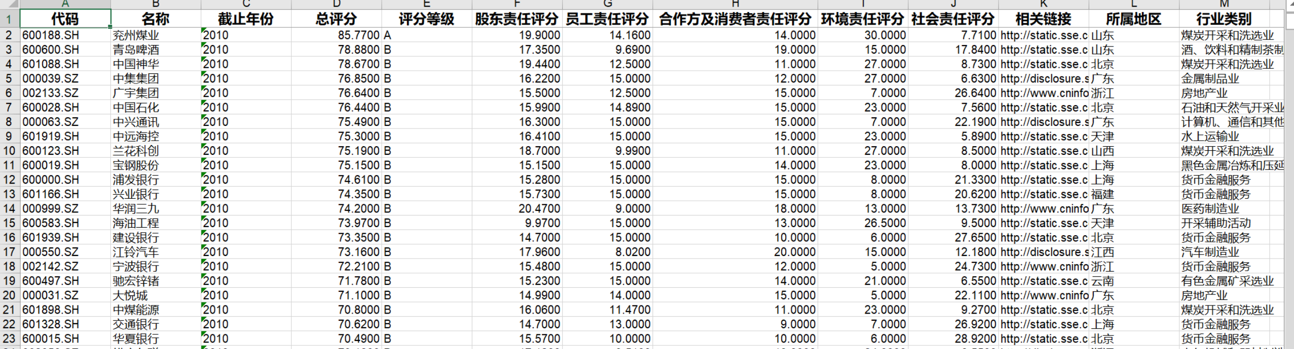 和讯网社会责任评分 2010-2019年.zip