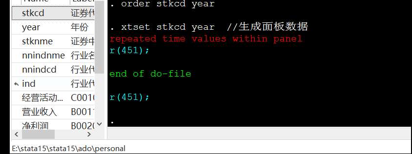 定义面板数据时,出现repeated time values within panel 是怎么回事