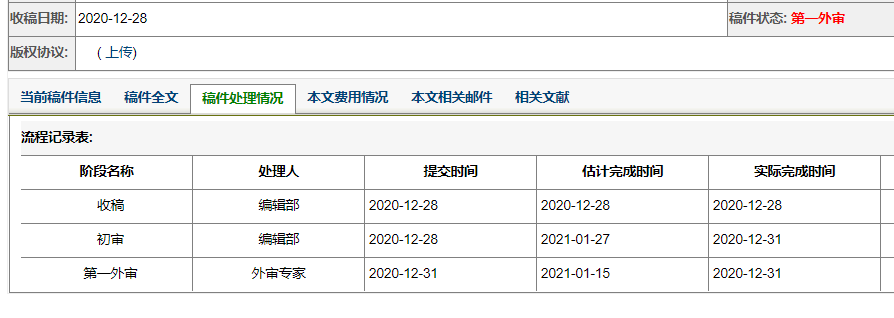 白盏 发表于 2021-1-4 10:46 最近又投了篇中管科,第一外审当天就完成 18年投稿还没遇见这种情况 有同样情况的不