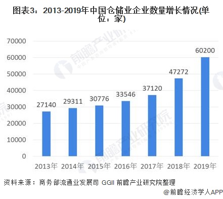 根据GGII数据,截至2019年末,仓储物流行业企业数量达6.02万家。近年来,在市场需求与政策支持的双重因素推动下,仓储业涌入大量资本,企业数量总体上保持稳步增长态势,服务于日用快消品、生鲜农产品、服装、医药等专业领域的仓储、仓配一体模式的企业数量逐步增长。