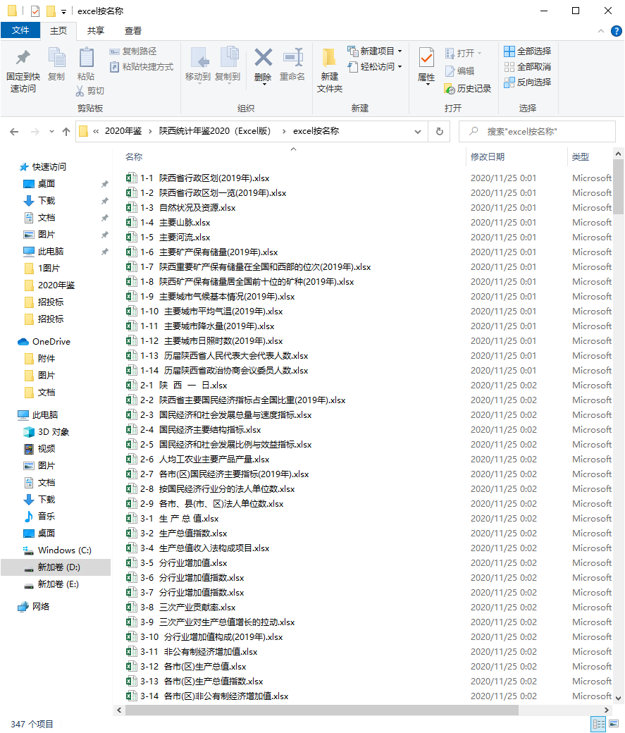 陕西统计年鉴2020EXCEL版本(文件名按指标名称命名,另含分页签列示各指标的汇总excel文件).zip