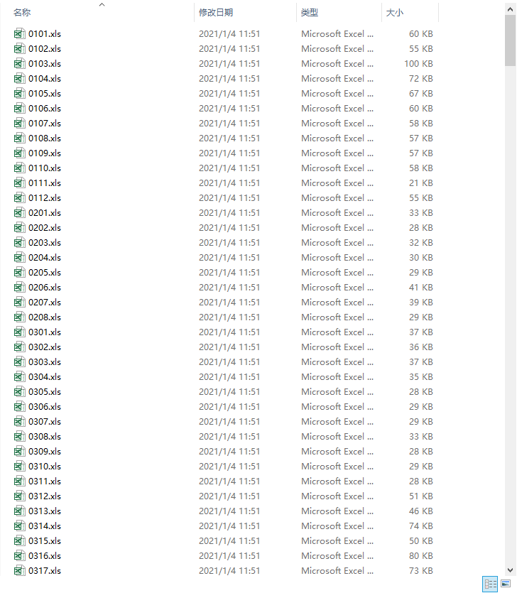 另外,我们还提供该年鉴的其他版本,如:excel文件按编号顺序号命名的版本,其文件格式大致如下图所示: