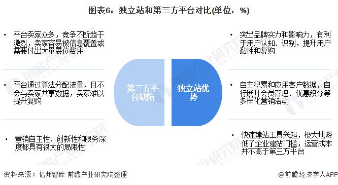 独立站的兴起一方面是因为第三方平台运营成本增加、头部效应越来越明显,且常出现罚款或封号等问题,让一部分中小卖家开始向独立站迁移。另一方面,独立站建站工具开始普及,除了Shopify、Bigcommerce等海外的服务商大力开战中国业务,本土的独立站服务商也在崛起,这将独立站的门槛大大降低了。由此大部分处于正常经营状态的卖家,在第三方平台的业务做到一定程度后,都希望开拓更好的渠道,实现多渠道运营。独立站似乎成为了必须,也成了卖家向品牌化转型的一个重要手段。