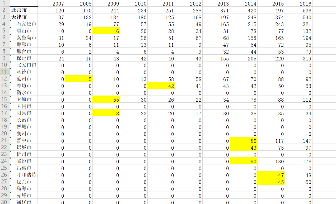CELner 发表于 2021-1-22 17:29 请问楼主能否给一个 各年运行的高铁车次经停站点 我需要地级市之间开通高铁的情况,看图里整理过程中,应该 ...