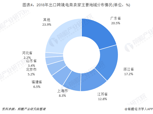 当前中国出口的跨境电商卖家主要集中在长三角和珠三角地区,尤其是以广东、浙江、经阿苏最为集中。这些地区同时也是传统外贸最为发达的地区聚集地,有着良好的传统外贸基础。