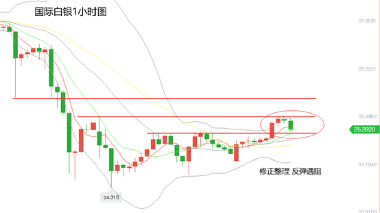 下方支撑:关注4小时5日均线25.18美元附近,25美元整数关口位置,周线布林带中轨24.88美元附近。