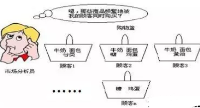 对于超市市场分析员分析顾客购买习惯的案例,现在让我们设定一个实际的场景,市场分析员利用超市海量的购物清单,从中分析出顾客购买啤酒会和哪些商品一起购买,依次来合理安排商品的摆放,进而提高啤酒的销量。