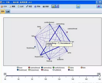 因此可以将啤酒和冻肉、罐装蔬菜放在一起销售,这也正好和前面的网络节点图的显示相一致。
