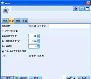 为了提高建模性能,设置了“优化”选项供用户选择。选择“速度”可指示算法从不使用磁盘溢出,以便提高性能。选择“内存”可指示算法在合适的时候,以牺牲某些速度为代价使用磁盘溢出。