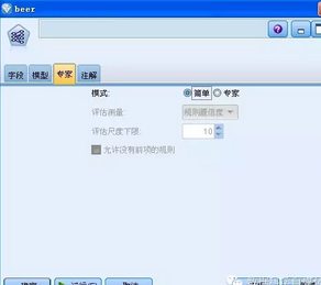 关于“专家”选项的设置和介绍,请参见 IBM SPSS Modeler 帮助文档。