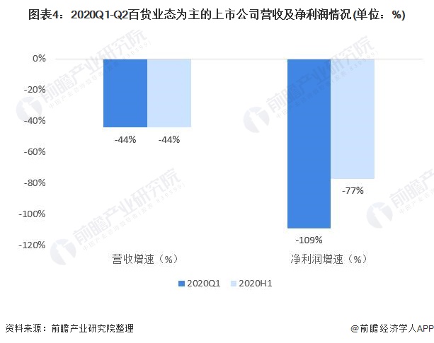 2020年一季度亏损更为严重,净利润同比下降109%,43家百货企业总体净利润为负,56%的企业亏损,二季度虽然有所改善,但是净利润仍然实现下降。